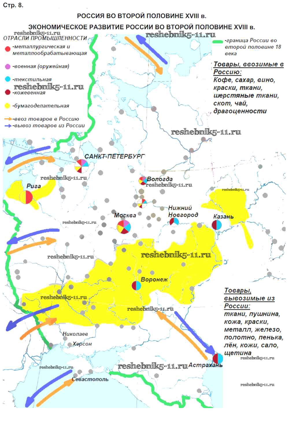 Готовая домашняя работа с ответами по Истории за 8 класс Тороп Контурные карты УМК Просвещение 2017 ФГОС - Страницы 8