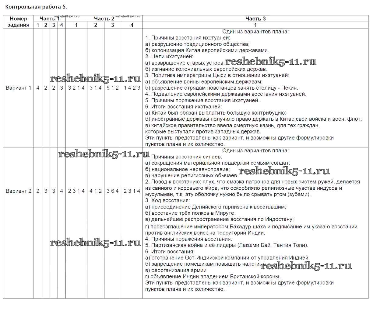 Готовая домашняя работа с ответами по Истории за 8 класс Баранов Проверочные и контрольные работы УМК Просвещение 2018 ФГОС - Контрольные работы 5