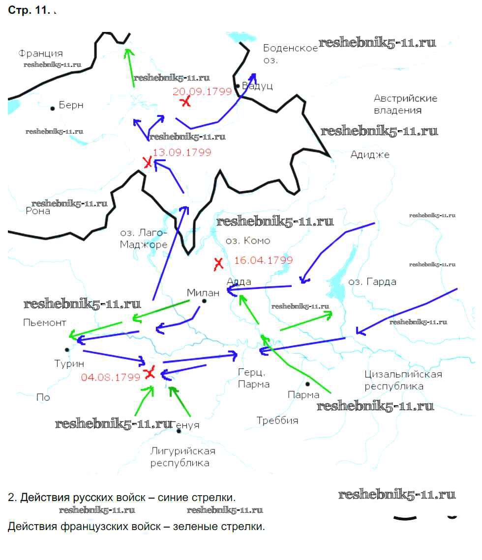 Готовая домашняя работа с ответами по Истории за 8 класс Павлова Контурные карты Экзамен 2019 ФГОС - Страницы 11
