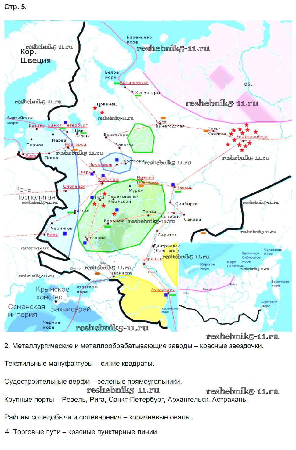 Готовая домашняя работа с ответами по Истории за 8 класс Павлова Контурные карты Экзамен 2019 ФГОС - Страницы 5
