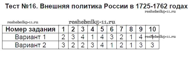 Готовая домашняя работа с ответами по Истории за 8 класс Воробьёва Тесты УМК Часть 1, 2 Экзамен 2017 ФГОС - Тесты 16