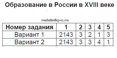 Готовая домашняя работа с ответами по Истории за 8 класс Воробьёва Тесты УМК Часть 1, 2 Экзамен 2017 ФГОС - Тесты Образование в России в XVIII в.