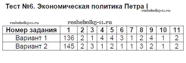 Готовая домашняя работа с ответами по Истории за 8 класс Воробьёва Тесты УМК Часть 1, 2 Экзамен 2017 ФГОС - Тесты 6