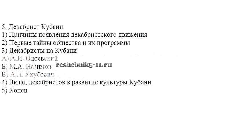Готовая домашняя работа с ответами по Кубановедению за 8 класс Гриценко Рабочая тетрадь Перспективы образования 2018 - § 3. Черноморцы в Отечественной войне 1812 г. Декабристы на Кубани 5