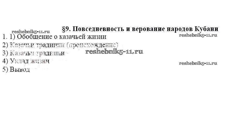 Готовая домашняя работа с ответами по Кубановедению за 8 класс Гриценко Рабочая тетрадь Перспективы образования 2018 - § 9. Повседневность и верование народов Кубани 1