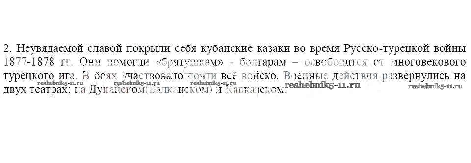 Готовая домашняя работа с ответами по Кубановедению за 8 класс Гриценко Рабочая тетрадь Перспективы образования 2018 - § 17. Кубанцы в Русско-турецкой войне 1877-1878 гг 2