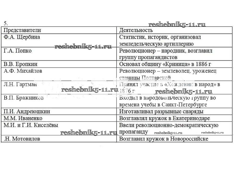 Готовая домашняя работа с ответами по Кубановедению за 8 класс Гриценко Рабочая тетрадь Перспективы образования 2018 - § 18. Общественно-политическая жизнь 5