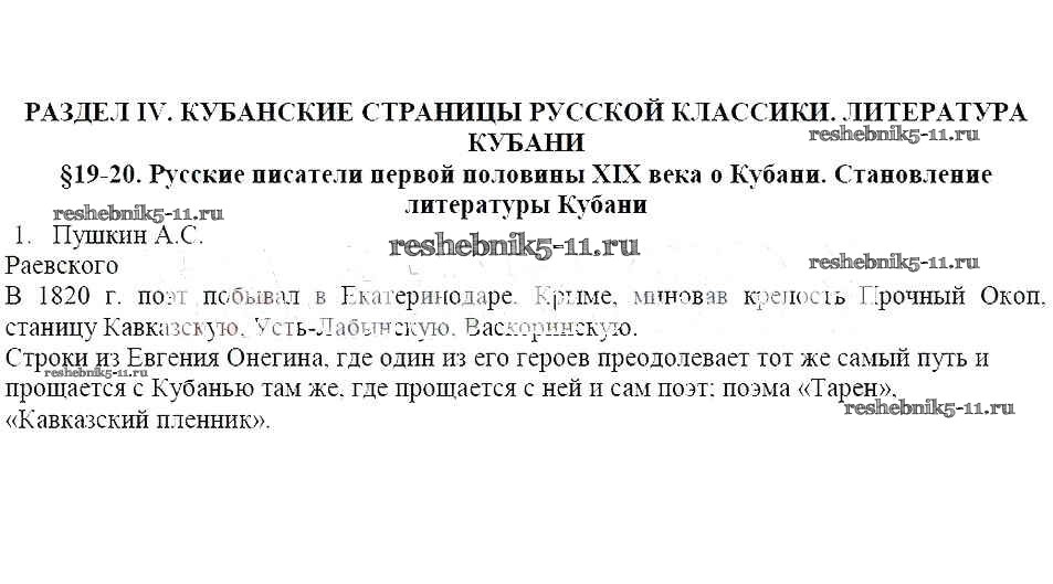 § 19-20. Русские писатели первой половины XIX века о Кубани. Становление литературы Кубани