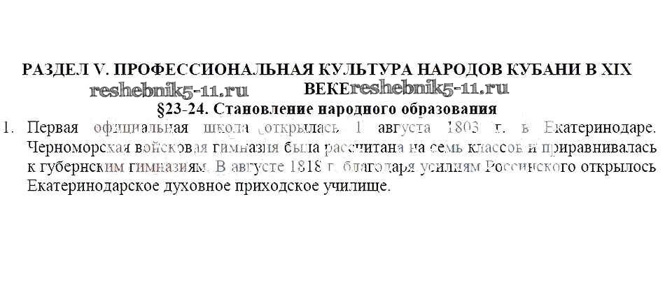 Готовая домашняя работа с ответами по Кубановедению за 8 класс Гриценко Рабочая тетрадь Перспективы образования 2018 - § 23-24. Становление народного образования 1