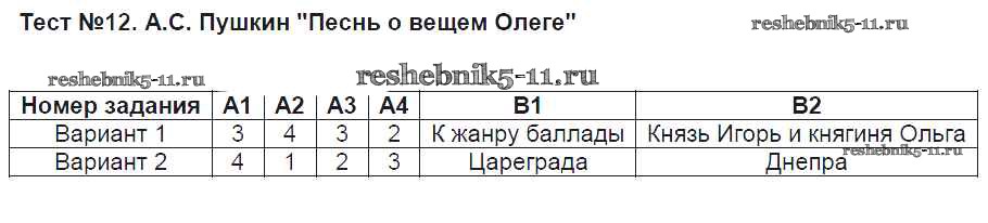 Готовая домашняя работа с ответами по Литературе за 8 класс Зубова Контрольно-измерительные материалы (КИМ) ВАКО 2015 ФГОС - Тесты 12