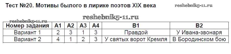 Готовая домашняя работа с ответами по Литературе за 8 класс Зубова Контрольно-измерительные материалы (КИМ) ВАКО 2015 ФГОС - Тесты 20