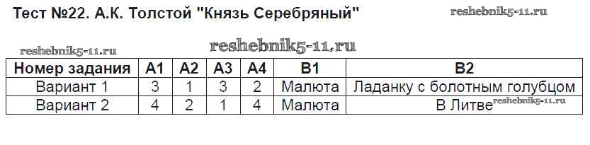 Готовая домашняя работа с ответами по Литературе за 8 класс Зубова Контрольно-измерительные материалы (КИМ) ВАКО 2015 ФГОС - Тесты 22