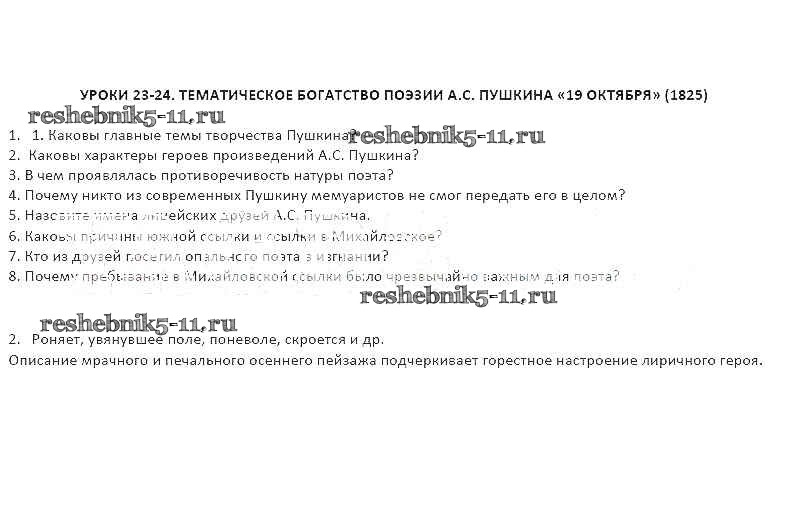 Готовая домашняя работа с ответами по Литературе за 8 класс Соловьева Рабочая тетрадь Инновационная школа Русское слово 2016 ФГОС - Уроки 23