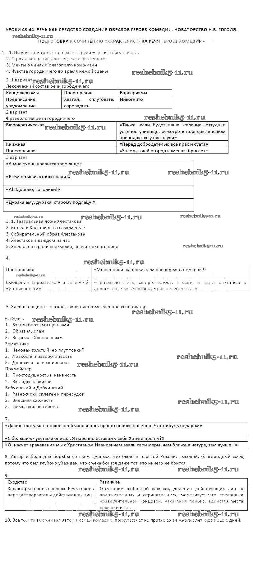 Готовая домашняя работа с ответами по Литературе за 8 класс Соловьева Рабочая тетрадь Инновационная школа Русское слово 2016 ФГОС - Уроки 43