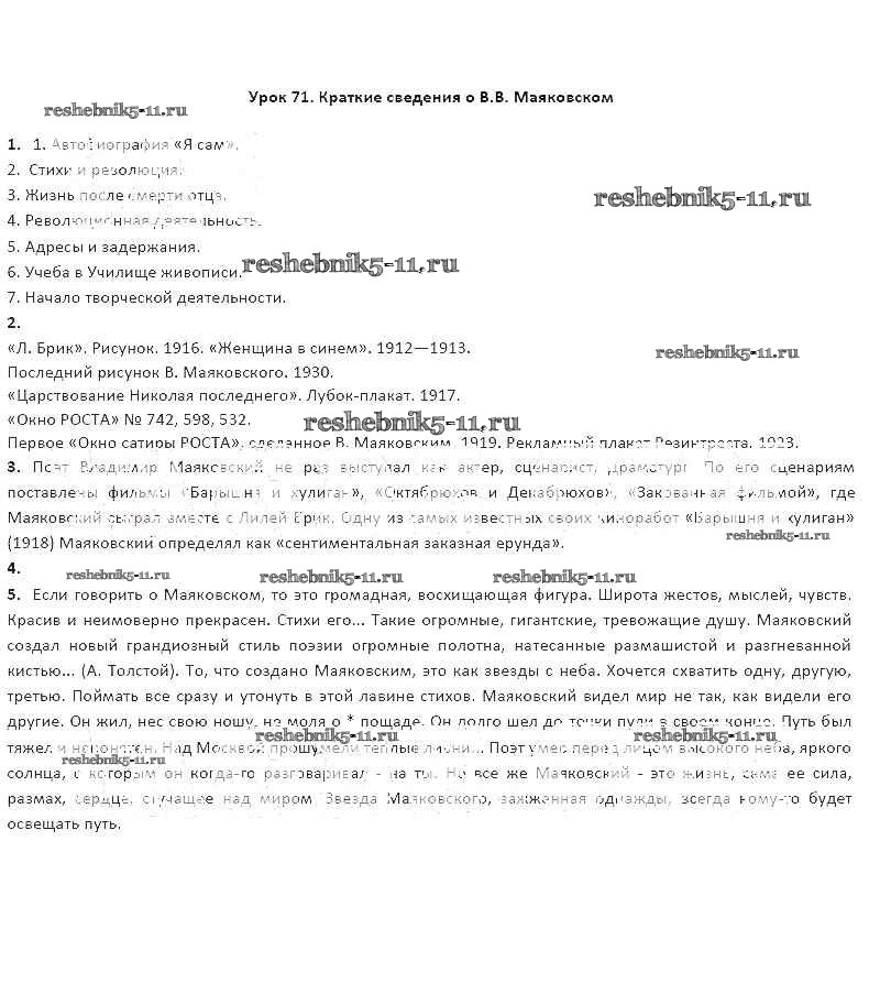 Готовая домашняя работа с ответами по Литературе за 8 класс Соловьева Рабочая тетрадь Инновационная школа Русское слово 2016 ФГОС - Уроки 71