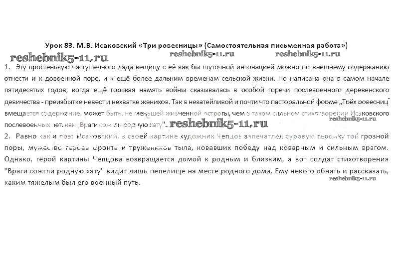 Готовая домашняя работа с ответами по Литературе за 8 класс Соловьева Рабочая тетрадь Инновационная школа Русское слово 2016 ФГОС - Уроки 83