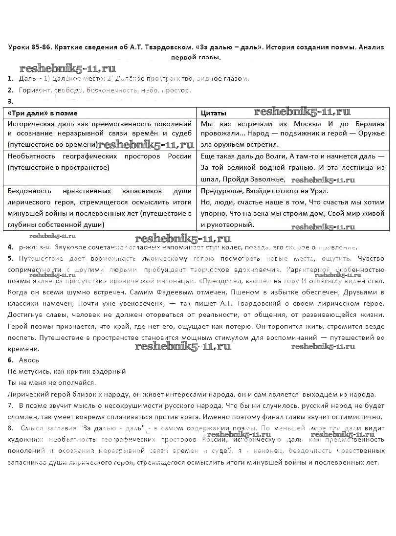 Готовая домашняя работа с ответами по Литературе за 8 класс Соловьева Рабочая тетрадь Инновационная школа Русское слово 2016 ФГОС - Уроки 85