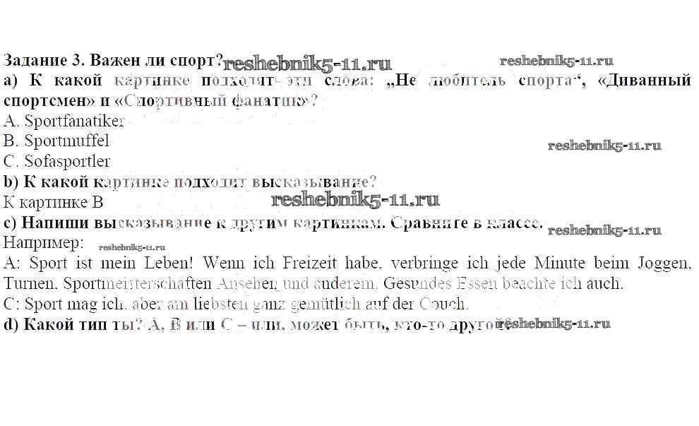 Готовая домашняя работа с ответами по Немецкому языку за 8 класс Аверин, Джин, Рорман, Ризу Учебник Horizonte Просвещение 2016 ФГОС - Глава 1. Фитнес и спорт 3