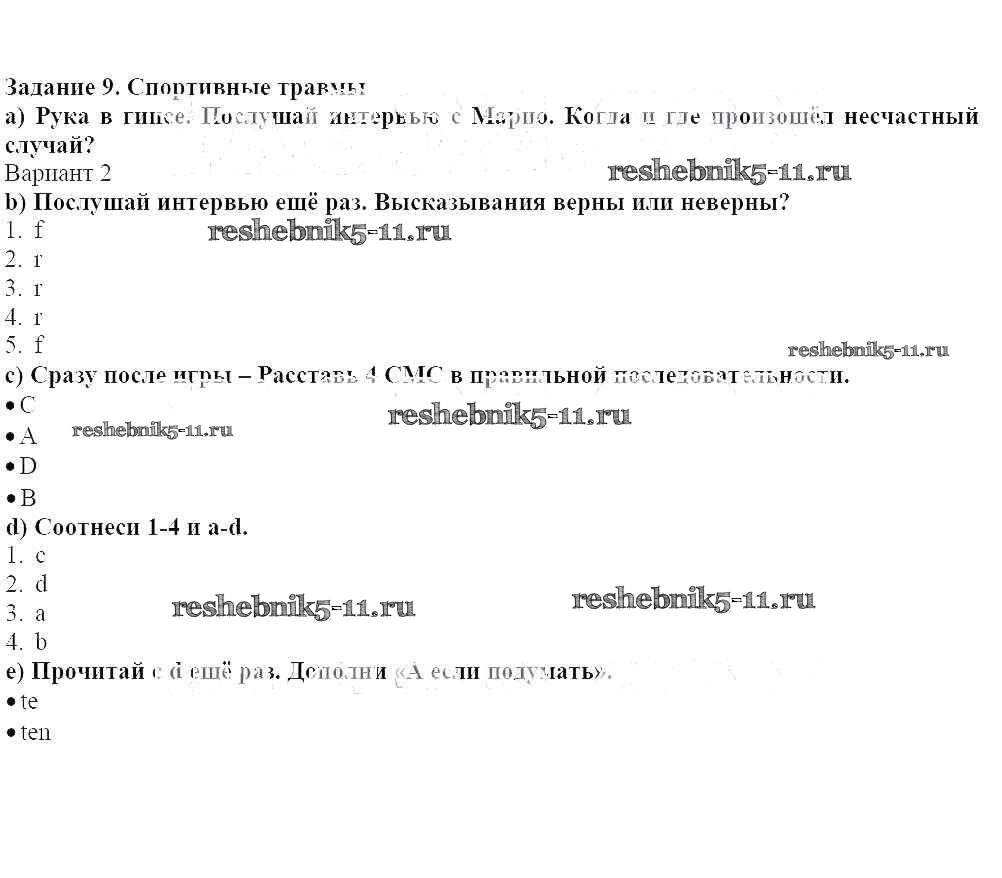 Готовая домашняя работа с ответами по Немецкому языку за 8 класс Аверин, Джин, Рорман, Ризу Учебник Horizonte Просвещение 2016 ФГОС - Глава 1. Фитнес и спорт 9