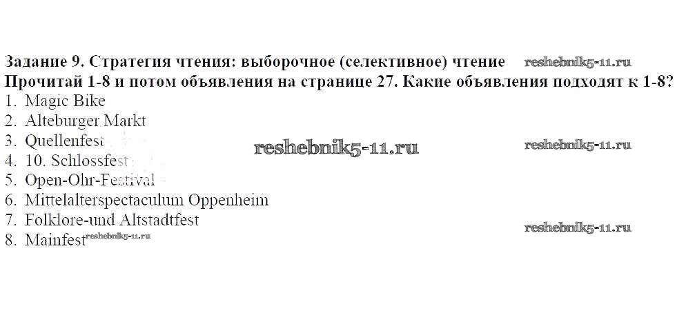 Готовая домашняя работа с ответами по Немецкому языку за 8 класс Аверин, Джин, Рорман, Ризу Учебник Horizonte Просвещение 2016 ФГОС - Глава 3. Наши праздники 9