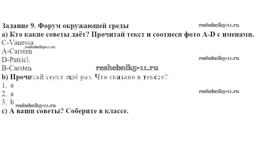 Готовая домашняя работа с ответами по Немецкому языку за 8 класс Аверин, Джин, Рорман, Ризу Учебник Horizonte Просвещение 2016 ФГОС - Глава 5. Мир и окружающий мир 9