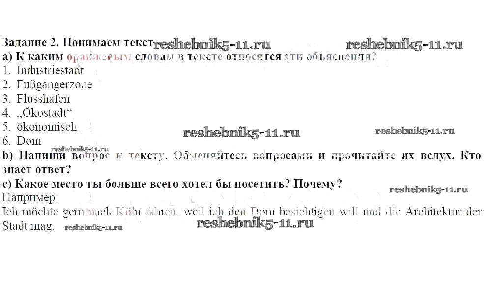 Готовая домашняя работа с ответами по Немецкому языку за 8 класс Аверин, Джин, Рорман, Ризу Учебник Horizonte Просвещение 2016 ФГОС - Глава 6. Путешествие по Рейну 2