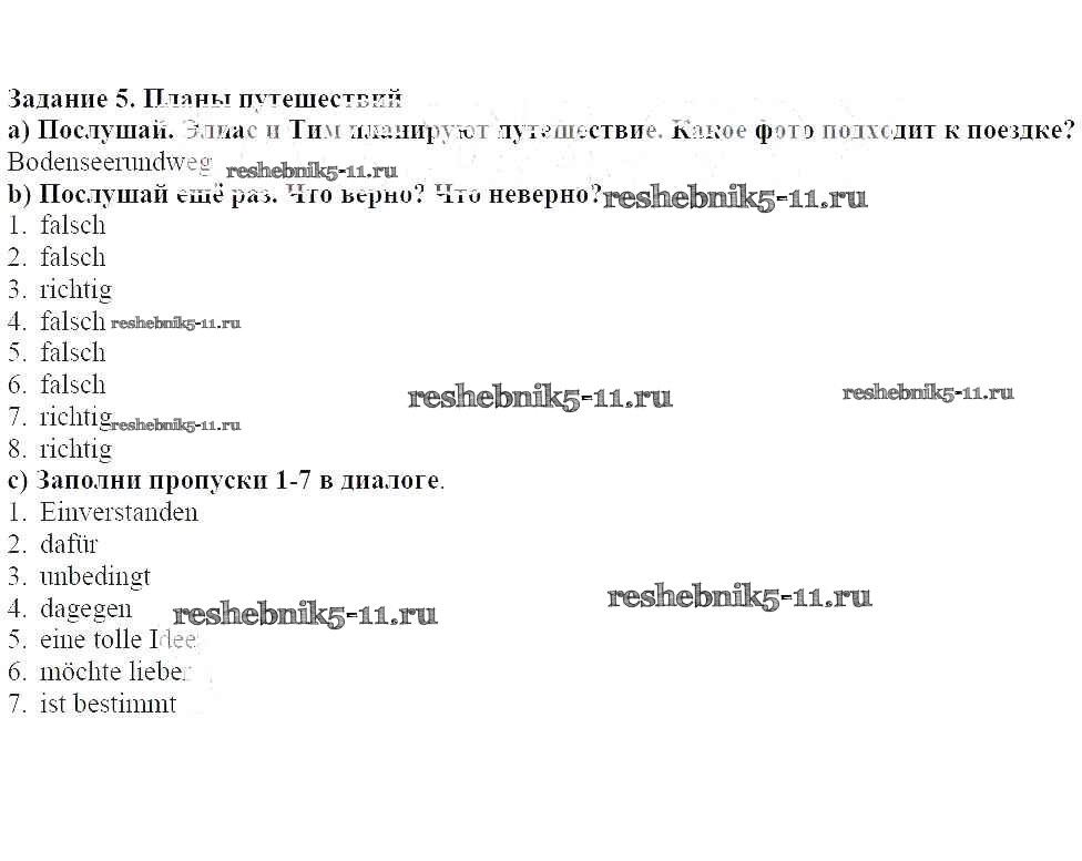 Готовая домашняя работа с ответами по Немецкому языку за 8 класс Аверин, Джин, Рорман, Ризу Учебник Horizonte Просвещение 2016 ФГОС - Глава 6. Путешествие по Рейну 5