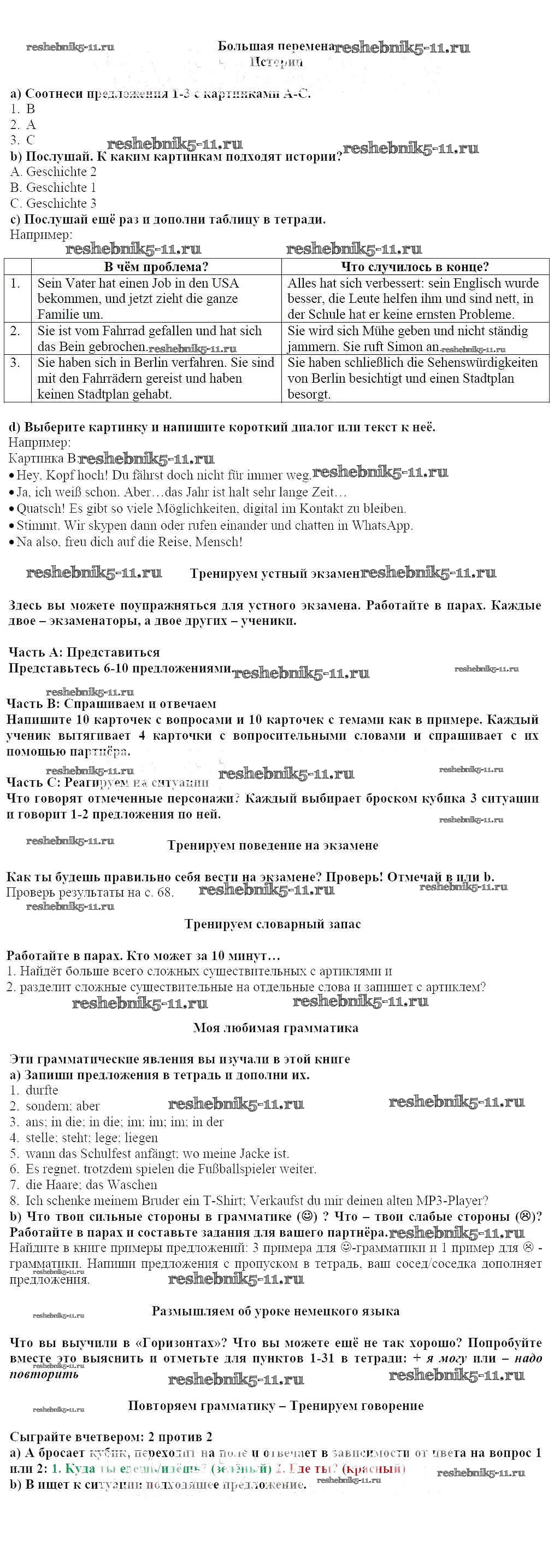 Готовая домашняя работа с ответами по Немецкому языку за 8 класс Аверин, Джин, Рорман, Ризу Учебник Horizonte Просвещение 2016 ФГОС - Глава 7. Путешествие по Рейну 11