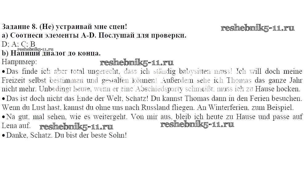 Готовая домашняя работа с ответами по Немецкому языку за 8 класс Аверин, Джин, Рорман, Ризу Учебник Horizonte Просвещение 2016 ФГОС - Глава 7. Путешествие по Рейну 8