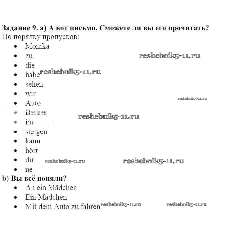 Готовая домашняя работа с ответами по Немецкому языку за 8 класс Бим, Садомова, Крылова, Санникова, Картова Учебник Просвещение 2014 ФГОС - Раздел 6 9