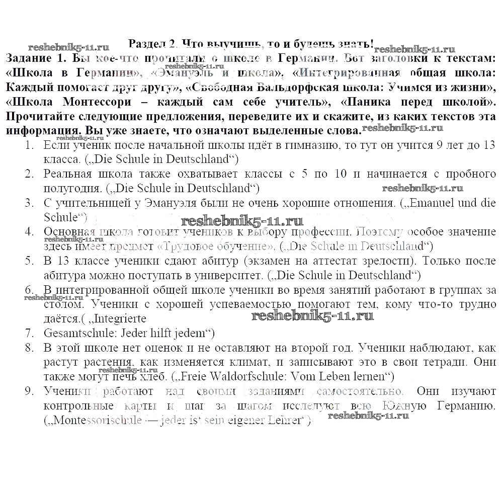 Готовая домашняя работа с ответами по Немецкому языку за 8 класс Бим, Садомова, Крылова, Санникова, Картова Учебник Просвещение 2014 ФГОС - Раздел 2 1