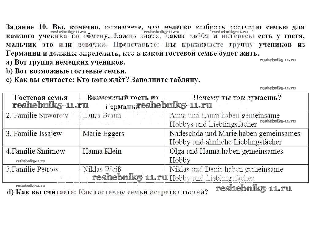 Готовая домашняя работа с ответами по Немецкому языку за 8 класс Бим, Садомова, Крылова, Санникова, Картова Учебник Просвещение 2014 ФГОС - Раздел 2 10