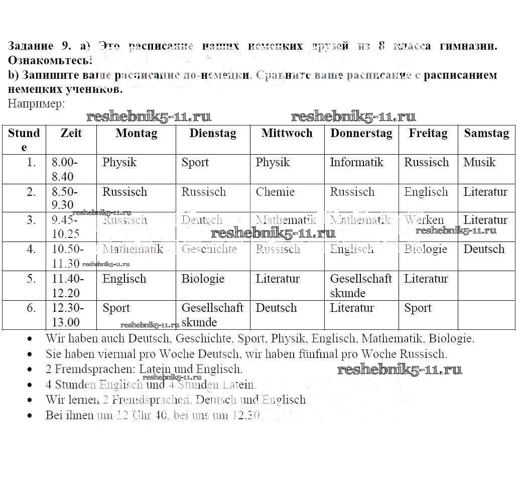 Готовая домашняя работа с ответами по Немецкому языку за 8 класс Бим, Садомова, Крылова, Санникова, Картова Учебник Просвещение 2014 ФГОС - Раздел 5 9