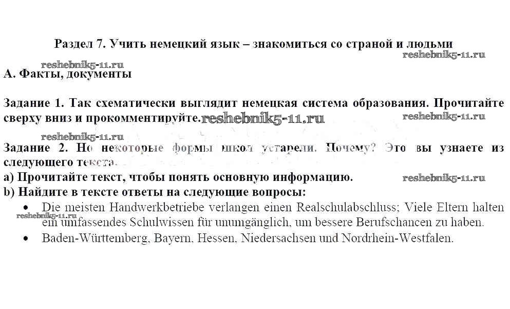 Готовая домашняя работа с ответами по Немецкому языку за 8 класс Бим, Садомова, Крылова, Санникова, Картова Учебник Просвещение 2014 ФГОС - Раздел 7 Факты, документы