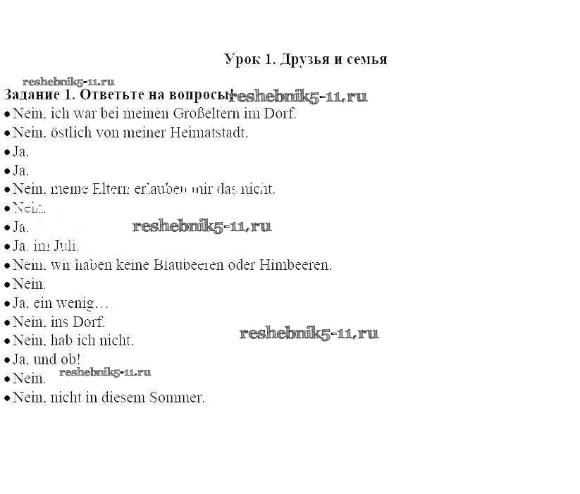 Готовая домашняя работа с ответами по Немецкому языку за 8 класс Радченко, Хебелер Учебник Alles Klar! Дрофа 2015 ФГОС - Урок 1. Друзья и семья 1