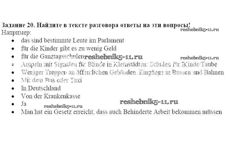 Готовая домашняя работа с ответами по Немецкому языку за 8 класс Радченко, Хебелер Учебник Alles Klar! Дрофа 2015 ФГОС - Урок 3. Всё в порядке! 20