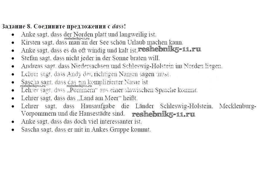 Готовая домашняя работа с ответами по Немецкому языку за 8 класс Радченко, Хебелер Учебник Alles Klar! Дрофа 2015 ФГОС - Урок 4. На севере Германии 8