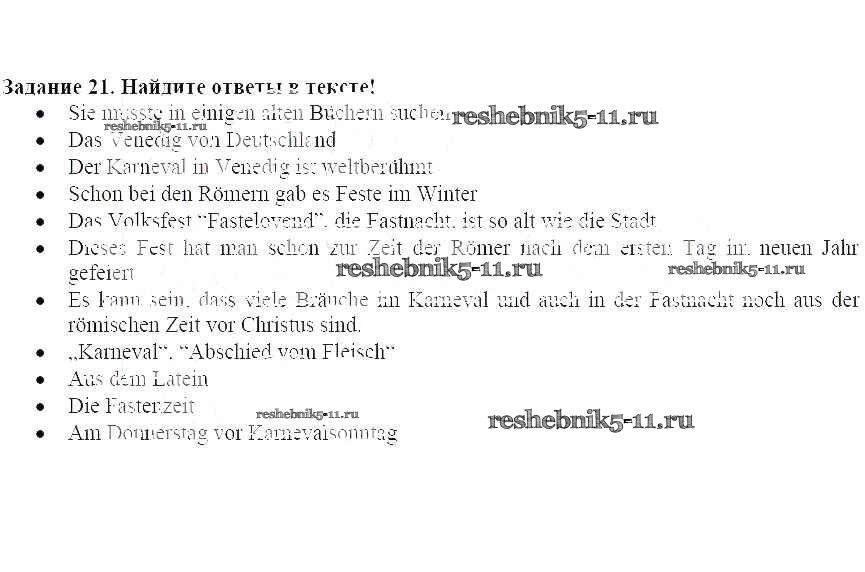 Готовая домашняя работа с ответами по Немецкому языку за 8 класс Радченко, Хебелер Учебник Alles Klar! Дрофа 2015 ФГОС - Урок 6. Карнавал с русскими гостями 21
