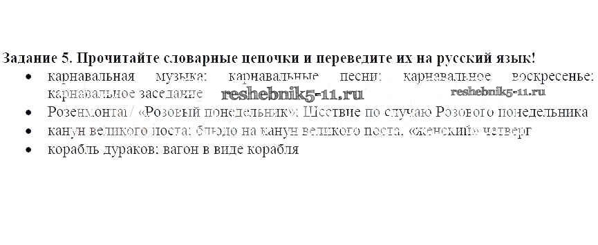 Готовая домашняя работа с ответами по Немецкому языку за 8 класс Радченко, Хебелер Учебник Alles Klar! Дрофа 2015 ФГОС - Урок 6. Карнавал с русскими гостями 5