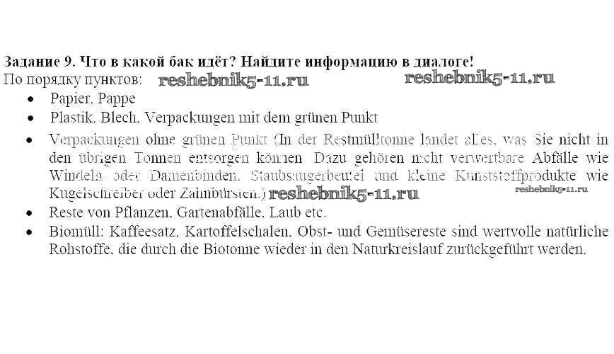 Готовая домашняя работа с ответами по Немецкому языку за 8 класс Радченко, Хебелер Учебник Alles Klar! Дрофа 2015 ФГОС - Урок 7. Мы разделаем мусор 9