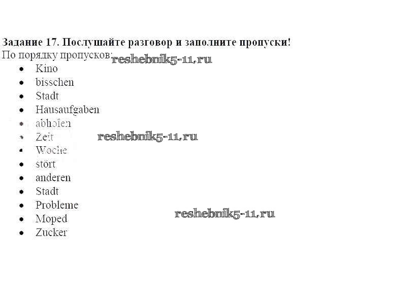 Готовая домашняя работа с ответами по Немецкому языку за 8 класс Радченко, Хебелер Учебник Alles Klar! Дрофа 2015 ФГОС - Урок 9. Подростки за городом 17