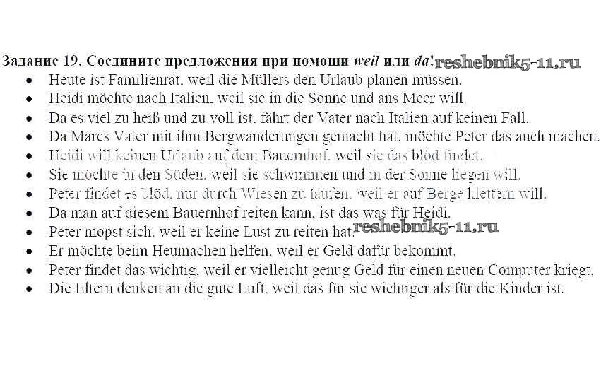 Готовая домашняя работа с ответами по Немецкому языку за 8 класс Радченко, Хебелер Учебник Alles Klar! Дрофа 2015 ФГОС - Урок 9. Подростки за городом 19