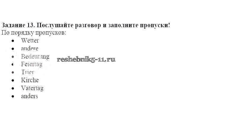 Готовая домашняя работа с ответами по Немецкому языку за 8 класс Радченко, Хебелер Учебник Alles Klar! Дрофа 2015 ФГОС - Урок 11. Троица, Майское дерево и другие праздники 13