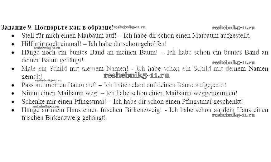 Готовая домашняя работа с ответами по Немецкому языку за 8 класс Радченко, Хебелер Учебник Alles Klar! Дрофа 2015 ФГОС - Урок 11. Троица, Майское дерево и другие праздники 9
