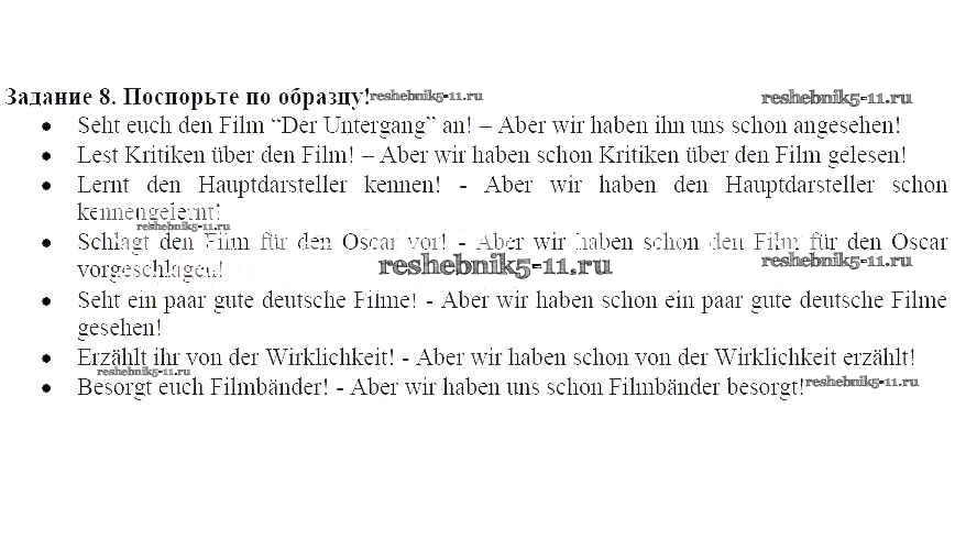 Готовая домашняя работа с ответами по Немецкому языку за 8 класс Радченко, Хебелер Учебник Alles Klar! Дрофа 2015 ФГОС - Урок 12. Кино вчера и сегодня 8