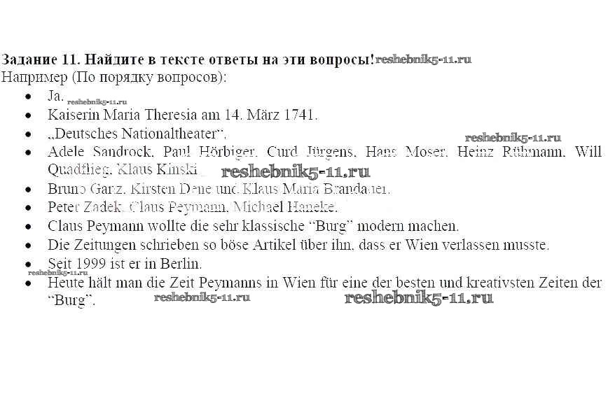 Готовая домашняя работа с ответами по Немецкому языку за 8 класс Радченко, Хебелер Учебник Alles Klar! Дрофа 2015 ФГОС - Урок 13. Жизнь – это театр 11