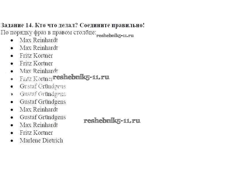 Готовая домашняя работа с ответами по Немецкому языку за 8 класс Радченко, Хебелер Учебник Alles Klar! Дрофа 2015 ФГОС - Урок 13. Жизнь – это театр 14
