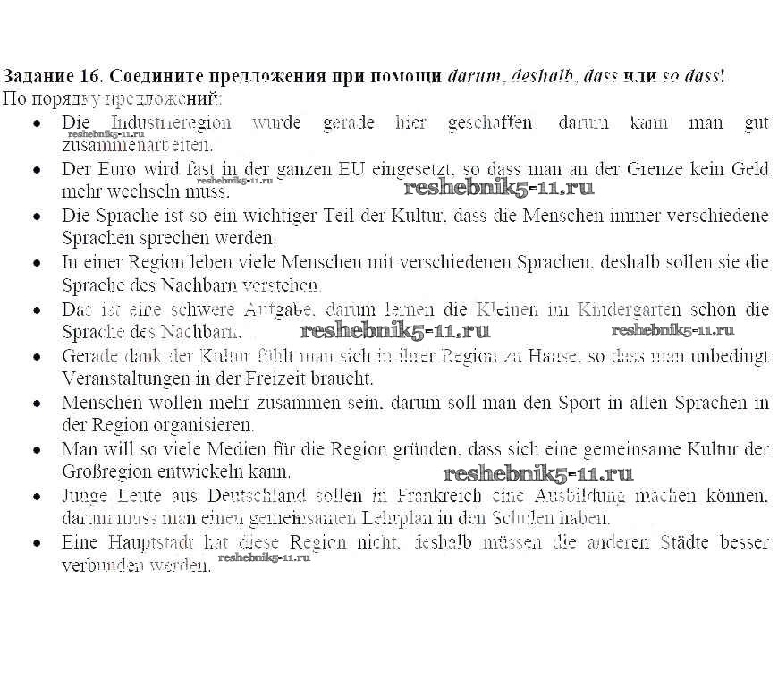 Готовая домашняя работа с ответами по Немецкому языку за 8 класс Радченко, Хебелер Учебник Alles Klar! Дрофа 2015 ФГОС - Урок 14. Саар 16