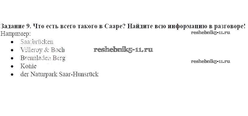 Готовая домашняя работа с ответами по Немецкому языку за 8 класс Радченко, Хебелер Учебник Alles Klar! Дрофа 2015 ФГОС - Урок 14. Саар 9
