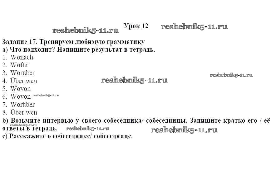 Готовая домашняя работа с ответами по Немецкому языку за 8 класс Радченко, Конго, Гертнер, Карелин Учебник Wunderkinder Plus Углубленный уровень Просвещение 2019 ФГОС - Глава 1. Школьный обмен 17